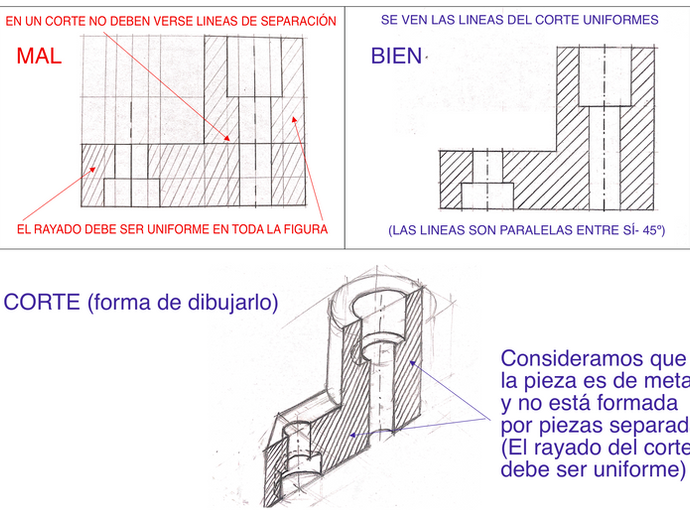 Sobre el dibujo del corte 2.- Los grosores de las lineas en los cortes 3.-Dibujo de los tubos cilíndricos de distintos radios en los...